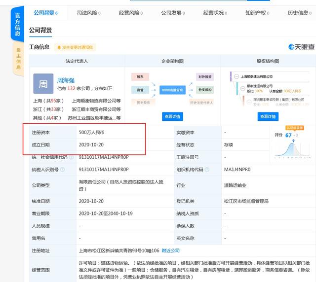 10月21日消息,天眼查信息顯示,10月20日,上海順泰速運(yùn)有限公司成立,注冊(cè)資本500萬(wàn)人民幣,法定代表人為周海強(qiáng),最終受益人為順豐創(chuàng)始人王衛(wèi)。